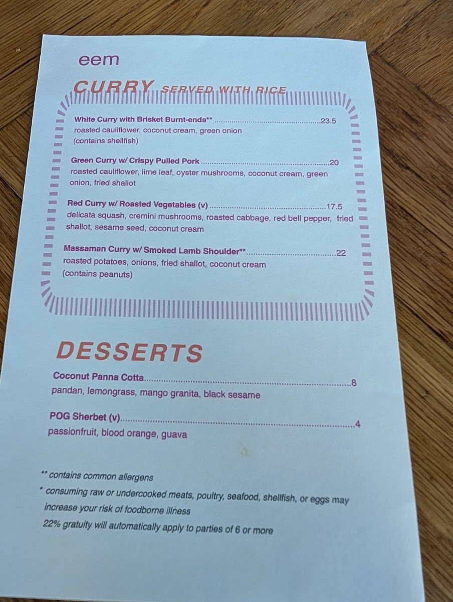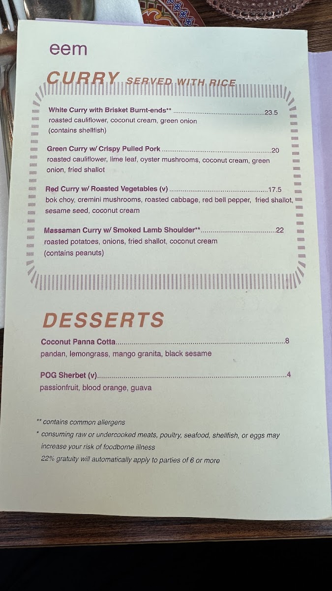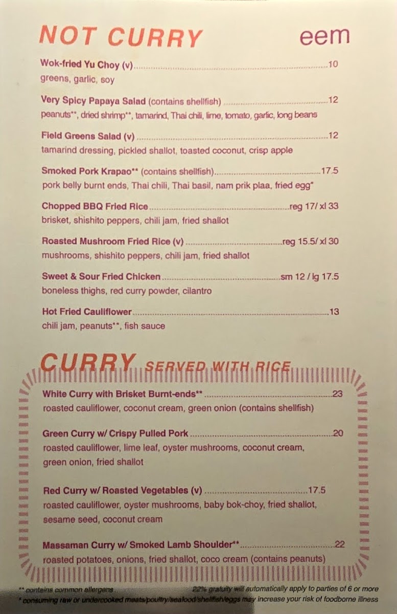 Now, let's dive into their delectable offerings! Eem is renowned for its mouthwatering menu that celebrates the bold, aromatic flavors of Thai food. The Massaman curry with smoked lamb shoulder has garnered rave reviews from guests like Yuri Vantowski, who passionately noted its incredible taste, while others sing praises for the brisket fried rice, which perfectly combines smoky notes with Thai spices.